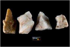 | Description / विवरण | There are n 4 flake cores. All of them are fully fluted. without any trace of crested ridge flakes. Three are tapering at one end. All are having sharp edges. One of them is having a flat base. |