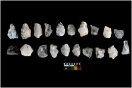 | Description / विवरण | There are n 20 of utilized worked flakes. They show multi-directional irregular scar pattern. Some are tapering on one end.Most of them have sharp edges. |
