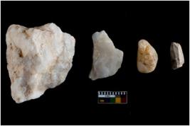 | Description / विवरण | There are n 20 of utilized worked flakes. They show multi-directional irregular scar pattern. Some are tapering on one end. All are uneven in shape and size |