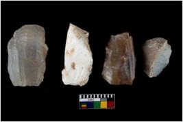 | Description / विवरण | There are n 4 cores; 3 are made up of Chalcedony and 1 is made up of Chert. All of them are fully fluted cores without any trace of crested ridge flakes. Some are tapering at one end and some have flat base. Few have blunted edges. |