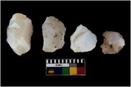 | Description / विवरण | There are n 4 of utilized worked cores. They show multidirectional irregular dominant scar pattern. Some are tapering at one end. Two of them have flat base. |