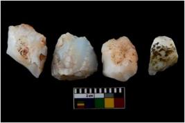 | Description / विवरण | There are n 4 of utilized worked cores. They show multidirectional irregular dominant scar pattern. Two of them have flat base. |