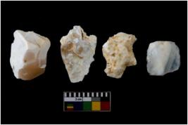 | Description / विवरण | There are n 4 of utilized worked cores. They show multidirectional irregular dominant scar pattern. They have sharp edges. Two of them have flat base. |
