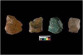 | Description / विवरण | There are n 4 cores. There are multi directional irregular scar pattern on both dorsal and ventral face of the cores. Some have flat base and few have blunted edges. |