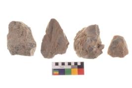 | Description / विवरण | There are n 4 utilized worked flakes; they show multidirectional irregular scar pattern on both dorsal and ventral face of the flakes.Two are tapering at one end and having sharp edges. |