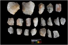 | Description / विवरण | There are n 25 flakes; among them 17 are made up of quartz and 8 are made up of chert. Some are tapering at one end.All are having sharp edges. |