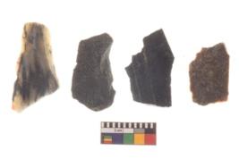 | Description / विवरण | There are n 4 utilized worked flakes; they show multidirectional irregular scar pattern on both dorsal and ventral face of the flakes.All are tapering at one end and having sharp edges. |