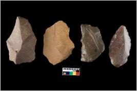 | Description / विवरण | There are n 4 cores; two of sandstone and two of chert. There are multi directional irregular scar pattern on both dorsal and ventral face of the cores. Some are tapering at one end. Some have flat base and few have blunted edges. |