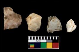 | Description / विवरण | There are n 4 of utilized worked cores. They show multidirectional irregular dominant scar pattern. Two have flat base. |