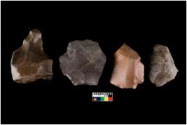 | Description / विवरण | There are n 4 cores. There are multi directional irregular scar pattern on both dorsal and ventral face of the cores. Some have flat base and few have blunted edges. |