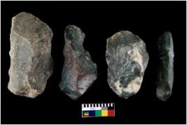 | Description / विवरण | There are n 4 cores. There are multi directional irregular scar pattern on both dorsal and ventral face of the cores. Some are tapering at one end. Some have flat base and few have blunted edges. |