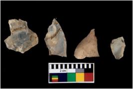 | Description / विवरण | There are n 4 of utilized worked cores. They show multidirectional irregular scar pattern. Two are tapering on one end and all are having sharp edges. |