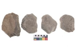 | Description / विवरण | These are n 4 of worked tools. They are tapering at one end and have sharp edges. Some have round base and show dominant irregular scar pattern. They have broken tip. |