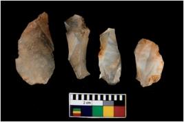 | Description / विवरण | There are n 4 of utilized worked cores. They show multidirectional irregular dominant scar pattern. Three are tapering on one end. |