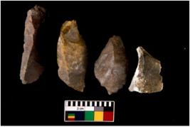 | Description / विवरण | There are n 4 of utilized worked cores. They show multidirectional irregular scar pattern and are tapering on one end. |