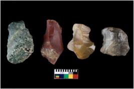 | Description / विवरण | There are n 4 cores. There are multi directional irregular scar pattern on both dorsal and ventral face of the cores. Some are tapering at one end. Some have flat base and few have blunted edges. |