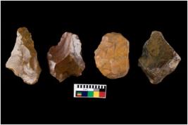 | Description / विवरण | There are n 4 cores. There are multi directional irregular scar pattern on both dorsal and ventral face of the cores. Some are tapering at one end. Some have flat base and few have blunted edges. |