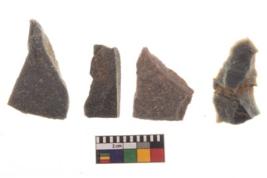 | Description / विवरण | There are n 4 utilized worked flakes; they show multidirectional irregular scar pattern on both dorsal and ventral face of the flakes.Two are tapering at one end and having sharp edges. |