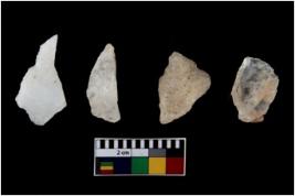 | Description / विवरण | There are n 4 flake cores. All of them are fully fluted flake cores without any trace of crested ridge flakes. They have sharp edges and some have flat base. |