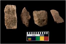 | Description / विवरण | There are n 4 of utilized worked cores. They show multidirectional irregular scar pattern. Three are elongated in shape. |
