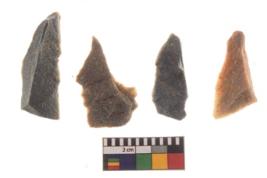 | Description / विवरण | There are n 4 utilized worked flakes; they show multidirectional irregular scar pattern on both dorsal and ventral face of the flakes.All are tapering at one end and all are having sharp edges. |