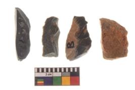 | Description / विवरण | There are n 4 utilized worked flakes; they show multidirectional irregular scar pattern on both dorsal and ventral face of the flakes.Three are tapering at one end and all are having sharp edges. |