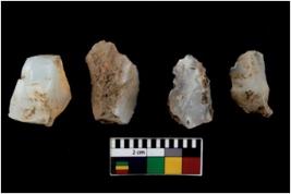 | Description / विवरण | There are n 4 of utilized worked cores. They show multidirectional irregular dominant scar pattern. Three have flat base. |