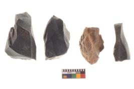 | Description / विवरण | There are n 4 utilized worked flakes; they show multidirectional irregular scar pattern on both dorsal and ventral face of the flakes.Three are tapering at one end and having sharp edges. |