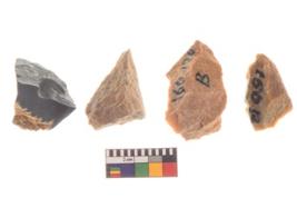 | Description / विवरण | There are n 4 utilized worked flakes; they show multidirectional irregular scar pattern on both dorsal and ventral face of the flakes.Three are tapering at one end and having sharp edges. |