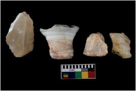 | Description / विवरण | There are n 4 of utilized worked cores. They show multidirectional irregular dominant scar pattern. One of them is tapering on one end. Three have flat base. |