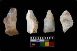 | Description / विवरण | There are n 4 of utilized worked cores. They show multidirectional irregular dominant scar pattern. All are tapering on one end. |