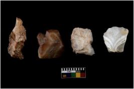 | Description / विवरण | There are n 4 of utilized worked cores.They show multidirectional irregular scar pattern. One is tapering on one end. |