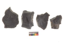 | Description / विवरण | There are n 4 utilized worked flakes; they show multidirectional irregular scar pattern on both dorsal and ventral face of the flakes.Three are tapering at one end and all are having sharp edges. |