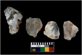 | Description / विवरण | There are n 4 of utilized worked cores. They show multidirectional irregular dominant scar pattern. One of them is tapering on one end. All have sharp edges. |