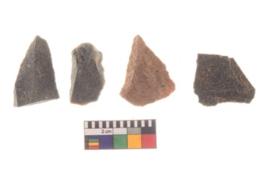 | Description / विवरण | There are n 4 utilized worked flakes; they show multidirectional irregular scar pattern on both dorsal and ventral face of the flakes.Three are tapering at one end and all are having sharp edges. |