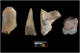 | Description / विवरण | There are n 4 of utilized worked cores.They show multidirectional irregular scar pattern. One is tapering on one end and is elonagted in shape. |