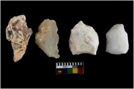 | Description / विवरण | There are n 4 of utilized worked cores.They show multidirectional irregular scar pattern. Three are tapering on one end and have flat base. |