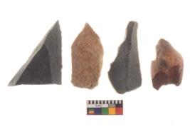 | Description / विवरण | There are n 4 utilized worked flakes; they show multidirectional irregular scar pattern on both dorsal and ventral face of the flakes.Three are tapering at one end and all are having sharp edges. |