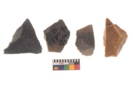 | Description / विवरण | There are n 4 utilized worked flakes; they show multidirectional irregular scar pattern on both dorsal and ventral face of the flakes.Three are tapering at one end and all are having sharp edges. |