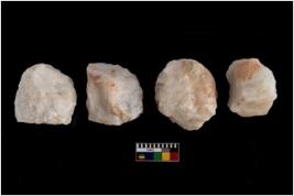 | Description / विवरण | There are n 4 of utilized worked cores. They show multidirectional irregular dominant scar pattern. Two have flat base. |