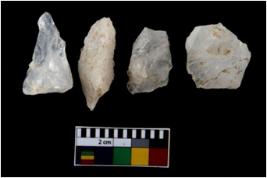 | Description / विवरण | There are n 4 flake cores. All of them are fully fluted flake cores without any trace of crested ridge flakes. They have sharp edges and some have flat base. |