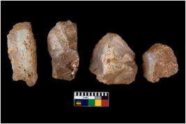 | Description / विवरण | There are n 4 of utilized worked cores.They show multidirectional irregular scar pattern. Two are tapering on one end. |