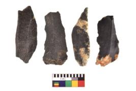 | Description / विवरण | There are n 4 utilized flake cores. There are multidirectional irregular scar pattern on both dorsal and ventral face of the flake cores. Two are tapering at one end and two have sharp edges. |