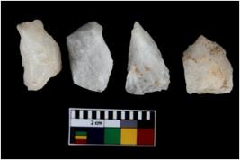 | Description / विवरण | There are n 4 flake cores. All of them are fully fluted flake cores without any trace of crested ridge flakes. They have sharp edges and some have flat base. |