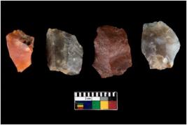 | Description / विवरण | There are n 4 of utilized worked cores. They show multidirectional irregular dominant scar pattern. Three of them have sharp edges. |