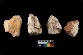 | Description / विवरण | There are n 4 of utilized worked cores.They show multidirectional irregular scar pattern. Three are tapering on one end and have flat base. |