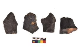 | Description / विवरण | There are n 4 utilized flake cores. There are multidirectional irregular scar pattern on both dorsal and ventral face of the flake cores. Three have flat base and one has blunted edges. |