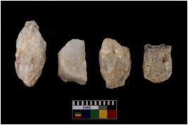 | Description / विवरण | There are n 4 of utilized worked cores. They show multidirectional irregular dominant scar pattern. One is elongated in shape. |