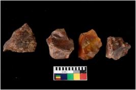 | Description / विवरण | There are n 4 of utilized worked cores.They show multidirectional irregular scar pattern. Three are tapering on one end and sharp edges. |