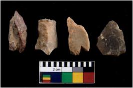 | Description / विवरण | There are n 4 of utilized worked cores. They show multidirectional irregular scar pattern. Three are tapering at one end and one has a broken tip. |